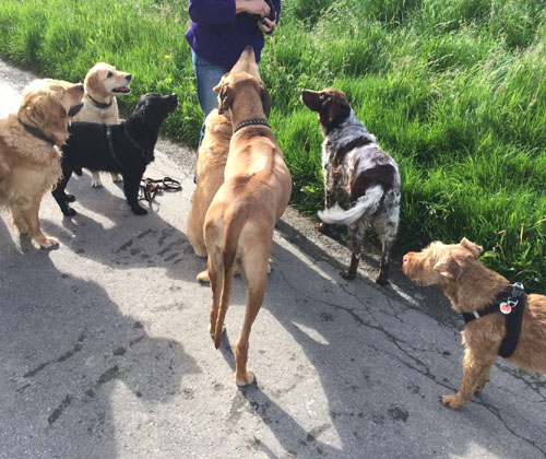 Ruby im Kreise ihrer vierbeinigen Freunde.