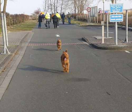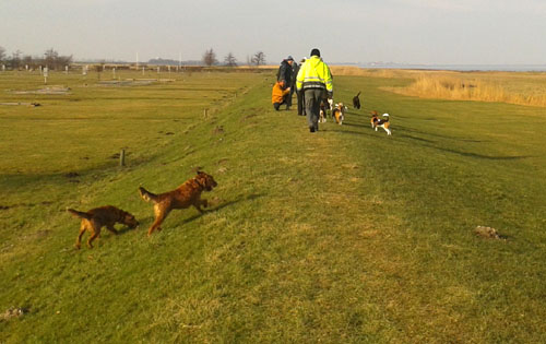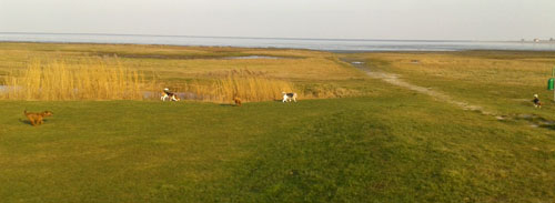 Heute war es mal trocken und sonnig und so liefen wir ca. 1 Stunde mit ca. 14 Hunden über den Deich.