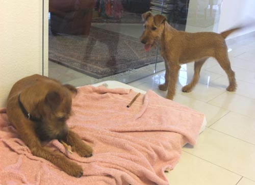 Auch Dreamy (hier mit Chira) war schon zum ersten Trimmen bei uns.