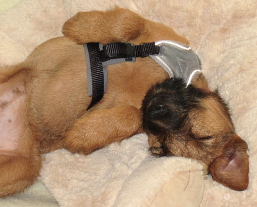 Sie hat ein Geschirr bekommen. Mit dem kann sie im Garten arbeiten ...