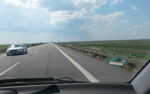der Damm liegt zwischen uns und der Insel Roemoe.