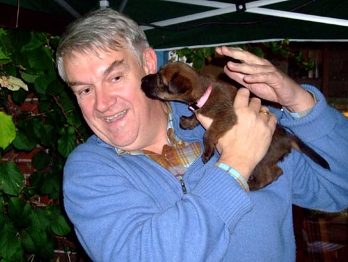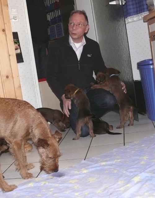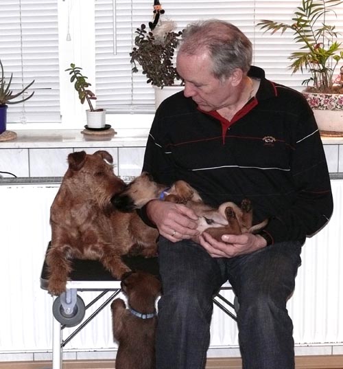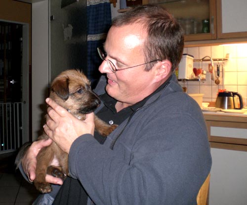 So glücklich sieht ein Mann aus, der eigentlich keinen zweiten Hund haben wollte.