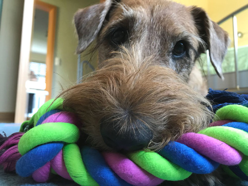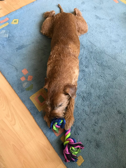 Chutney hat zum Geburtstag ein neues Spielseil bekommen.