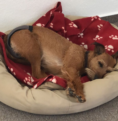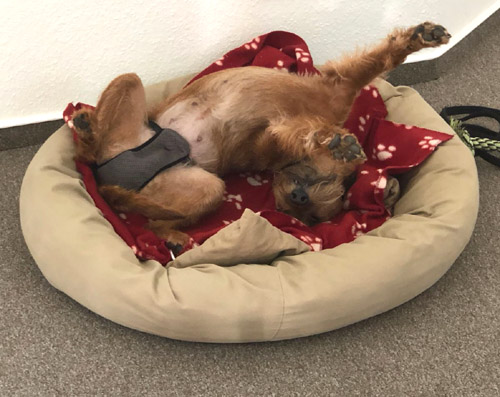 Im neuen Büro gibt es Teppichboden, so dass Chira während der Läufigkeit ein Höschen tragen muss.