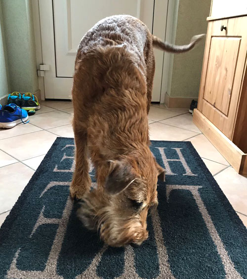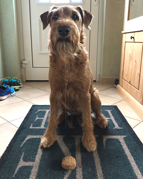 Chutney: "Frauchen, wann kann ich mir endlich das Leckerchen nehmen?"