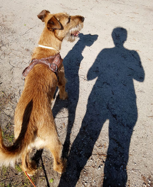 Interessantes Schattenspiel ! Carlo mit Frauchen.