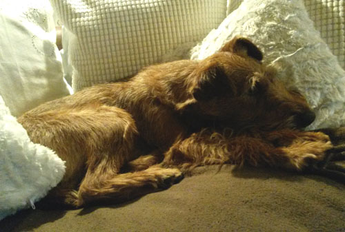 Chaya nimmt sich eine Auszeit auf dem Sofa.