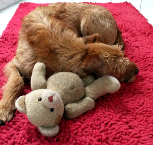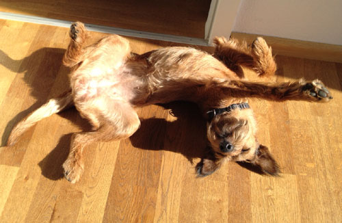 Morgens wartet Chaya geduldig, bis Frauchen im Bad fertig ist.