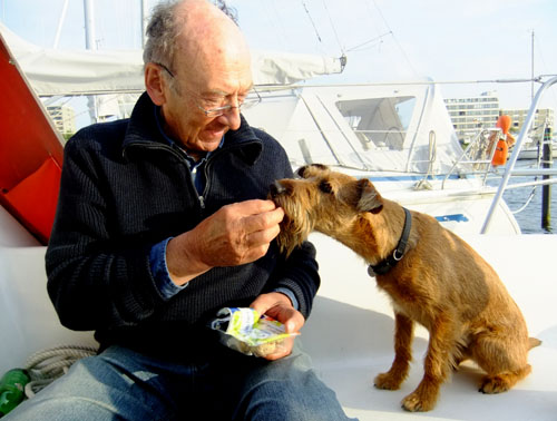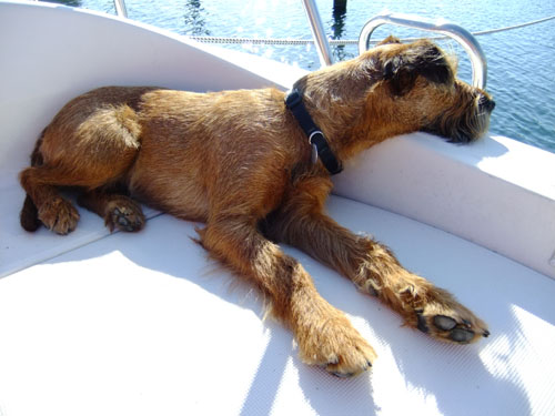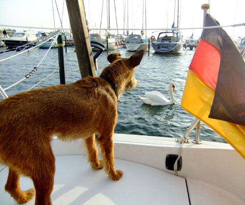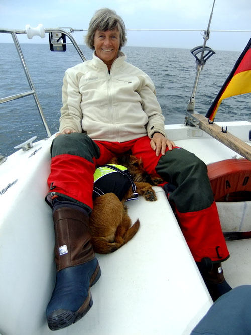 Hier sieht man sie ganz entspannt bei Frauchen liegen. Ein Profi eben :-) .