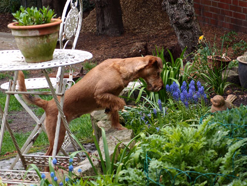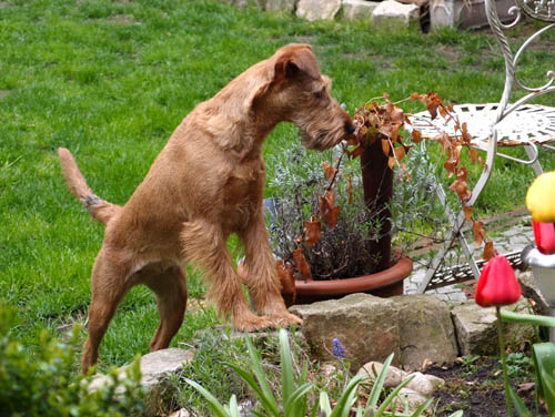 Chaya beobachtet mit Hingabe die Insekten in unserem Garten.