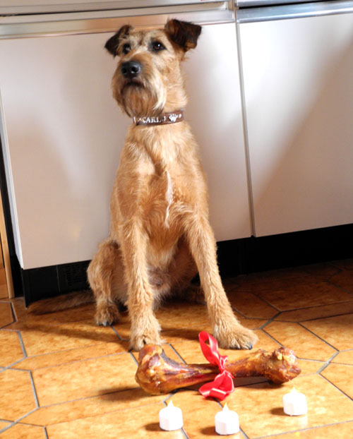 Carlo konnte sich über einen ganz besonders großen „Geburtstagsknochen“ freuen.