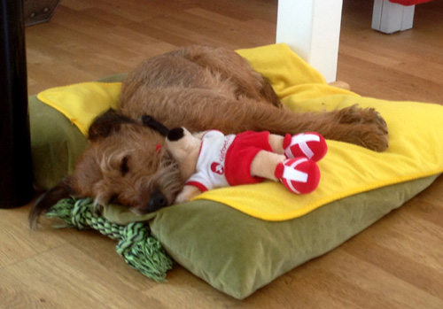 Schwester Chira hingegen genießt die „Auszeiten“ unter dem Schreibtisch von Frauchen.