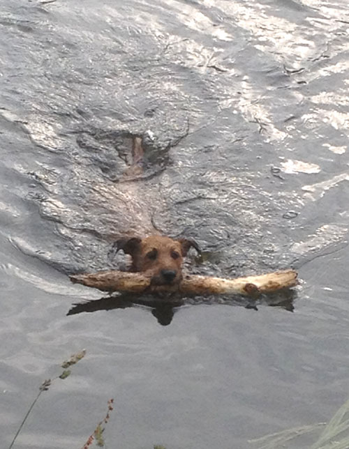 Chira ist unser „Wasserhund“. Kein Stöckchen ist ihr zu groß,