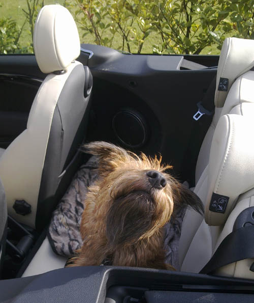 Ihr neustes Hobby ist allerdings mit Frauchen im Mini-Cabrio zu fahren