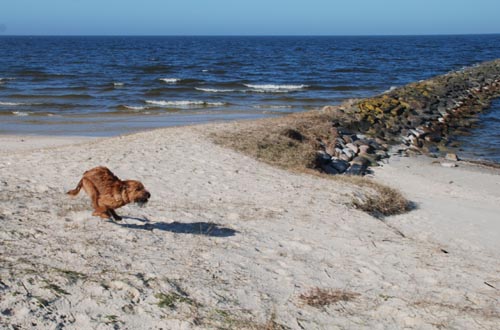 Chary ist ein absoluter „Strandhund“. Auch in den Osterferien