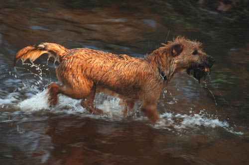 Hier sieht man sie ein Stöckchen aus dem Wasser holen.