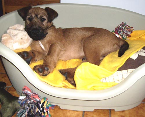 und präsentiert ganz stolz seinen neuen Schlafplatz.