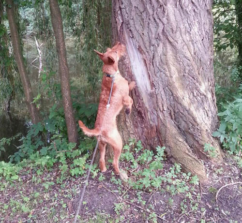 Wie gern Dreamy wohl dem Eichhörnchen hinterher klettern würde.