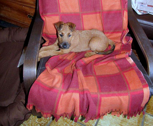 Enya macht einen auf „Hase“ und hilft Herrchen im Garten.