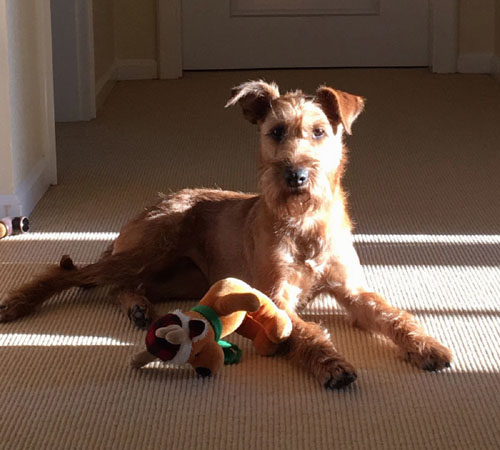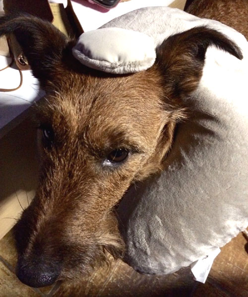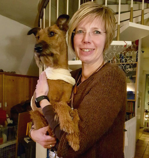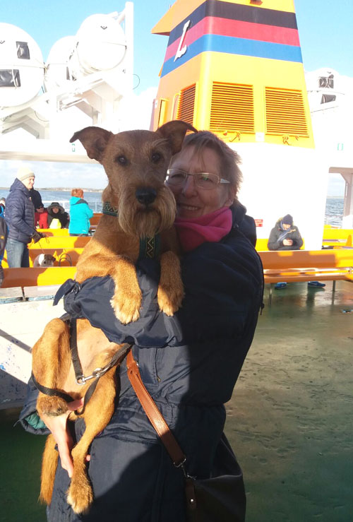 Eyk mit Frauchen auf der Fähre nach Langeoog.