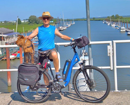 Mit Herrchen macht sie viele schöne Ausflüge mit dem Fahrrad.