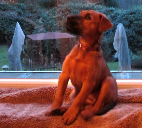 Brav wartet er darauf, dass sein Futti fertig wird.