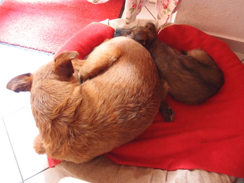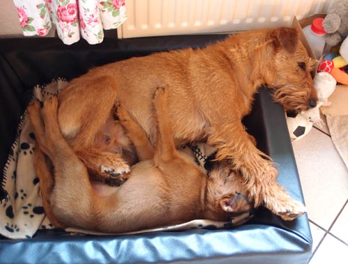 die ja Chefin in unserem Rudel ist. Sie spielen und ruhen auch gemeinsam.